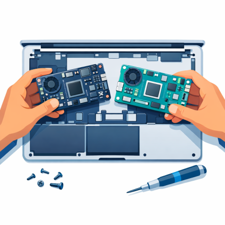 Prestation facturée pour le changement de la carte mère d'un ordinateur portable ou d'une télé.